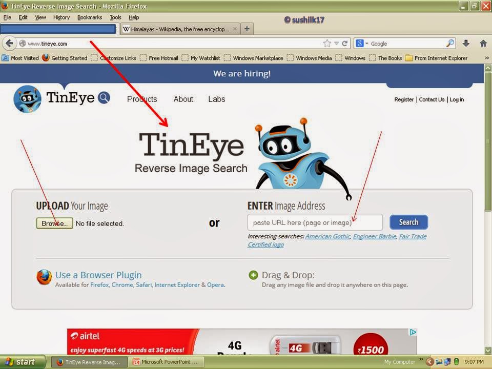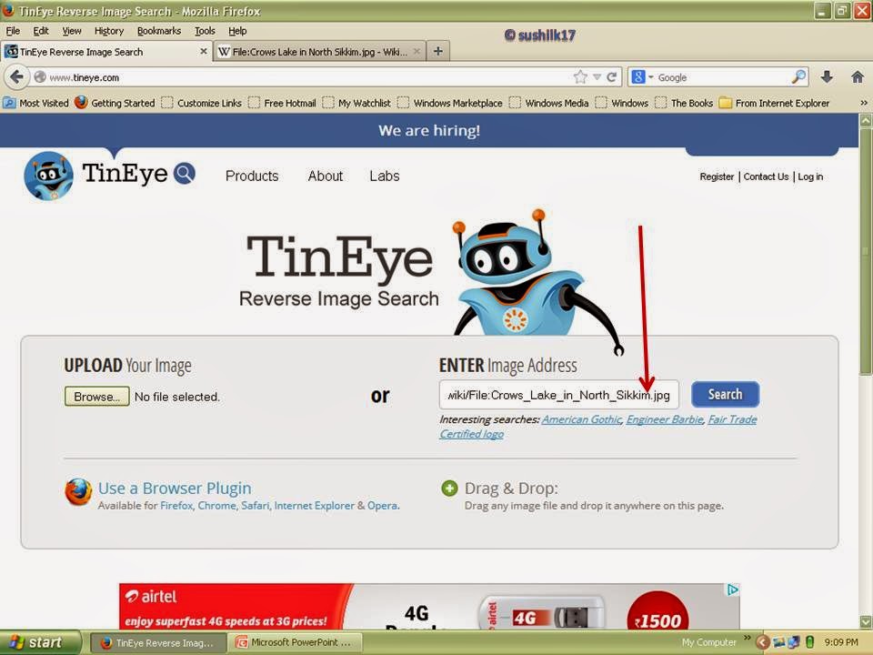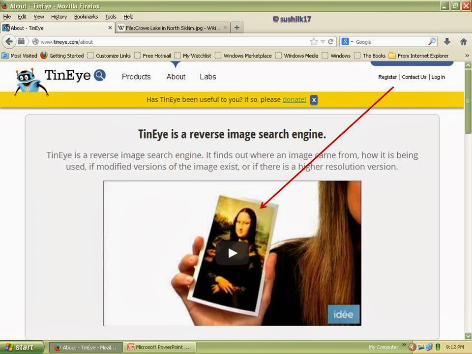 Register in to the TinEye, and follow the instructions. You can directly upload the image or can paste the URL i.e. the address of the image for further verification. Now, you will get a list of sites, where this picture is used. In the picture13 and 14 just explain about the site and how to search the sites where the picture is used.