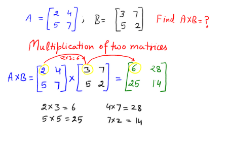 The similar way as of the addition, but now we will take products. Multiplication of matrices of the same order.