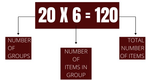 When each group has a similar number, we can multiply to find how many are there in all. We use “X” for multiplication.