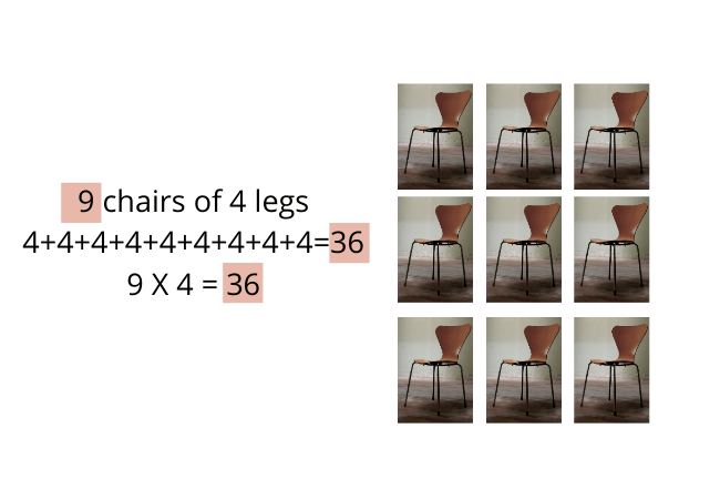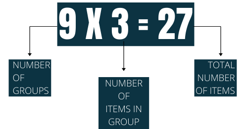 When each group has a similar number, we can multiply to find how many are there in all. We use “X” for multiplication.