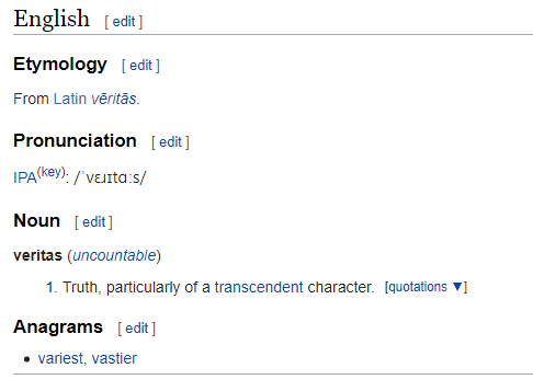 [6]. https://en.wiktionary.org/wiki/veritas